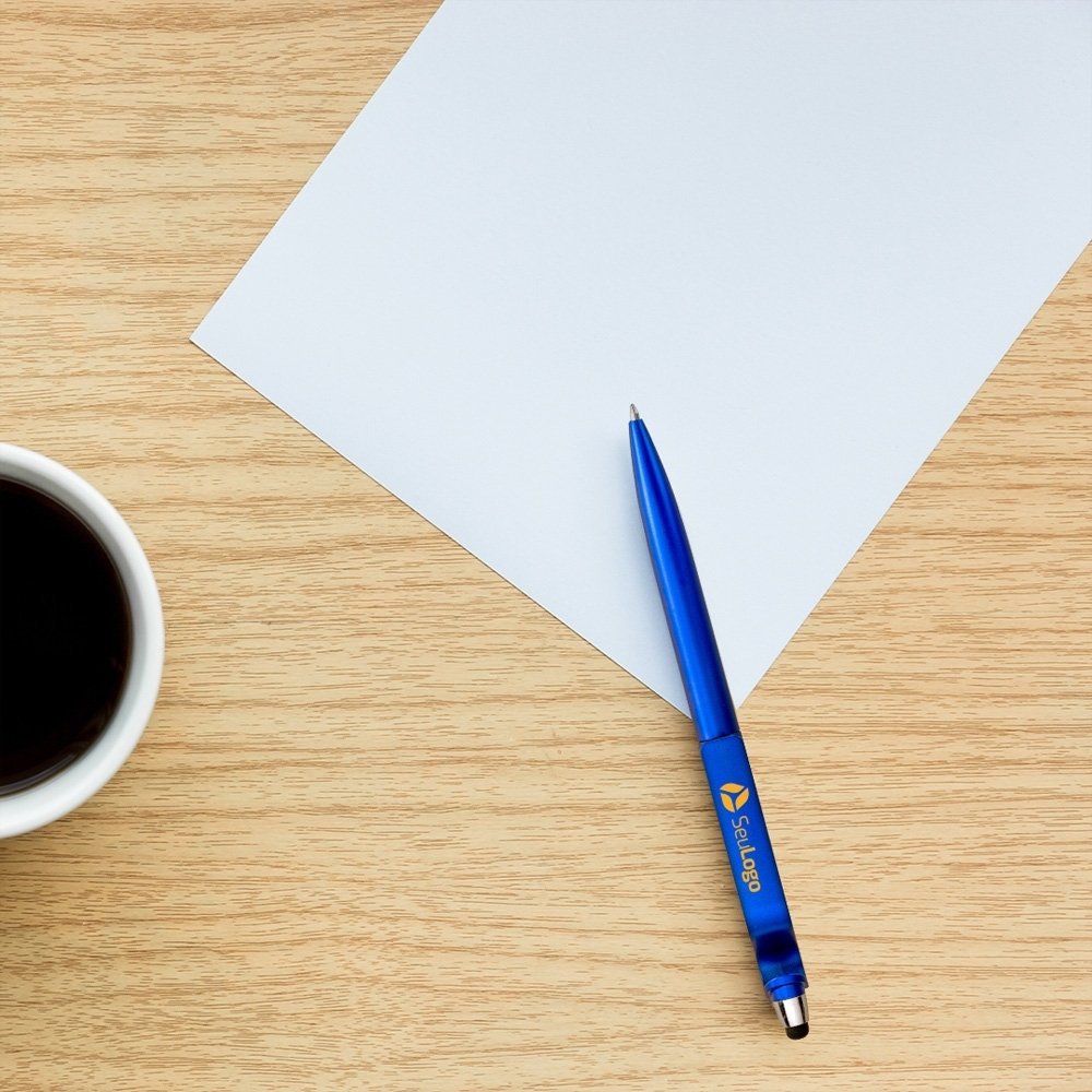 Fabricada em material leve e resistente, a caneta plástica touch com suporte apresenta design moderno e ergonômico, oferecendo conforto durante o uso prolongado. O suporte integrado proporciona ainda mais praticidade, permitindo que a caneta fique sempre acessível sobre a mesa, seja no escritório, no home office ou em ambientes corporativos.
