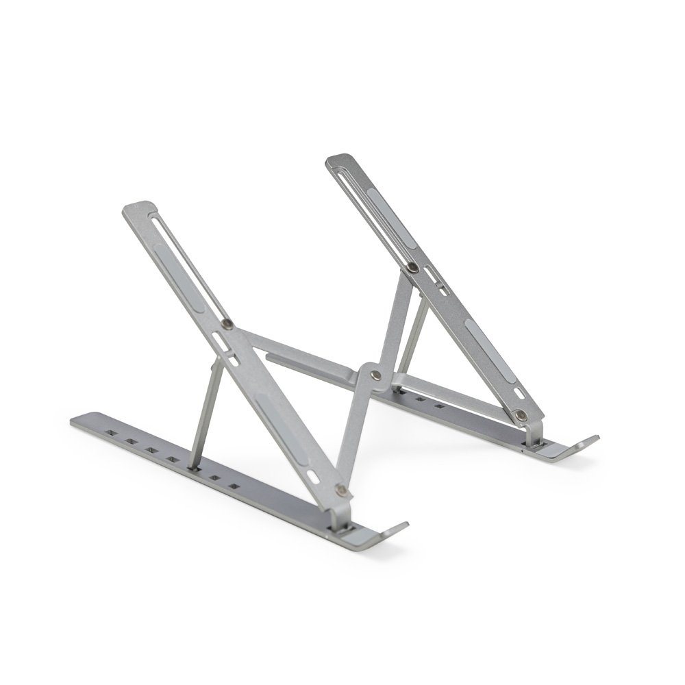 Um suporte retrátil que é uma opção prática para acomodar notebooks de forma apropriada em qualquer ambiente, seja para estudos, trabalho ou apresentações. Feito em metal resistente, apresenta até sete níveis de ajuste para oferecer ergonomia e elegância para apoiar notebooks de até 15,6 polegadas. Além disso, também conta com tiras de silicone distribuídas por sua lateral para ajudar a manter o aparelho mais firme e, além disso, o formato do suporte contém um design aberto para facilitar a dissipação de calor do eletrônico sobre ele.